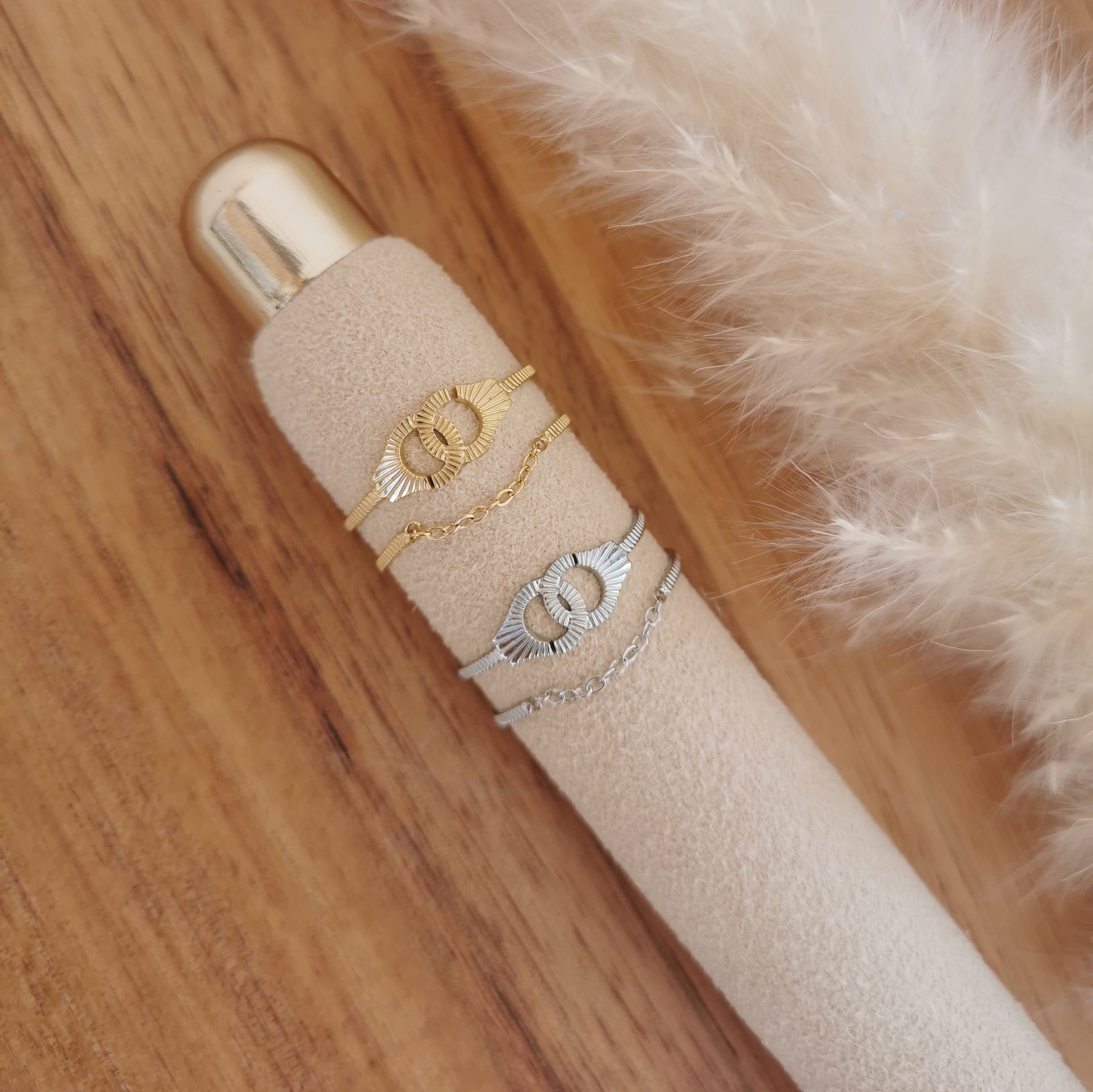 • Existe en doré ou en argenté